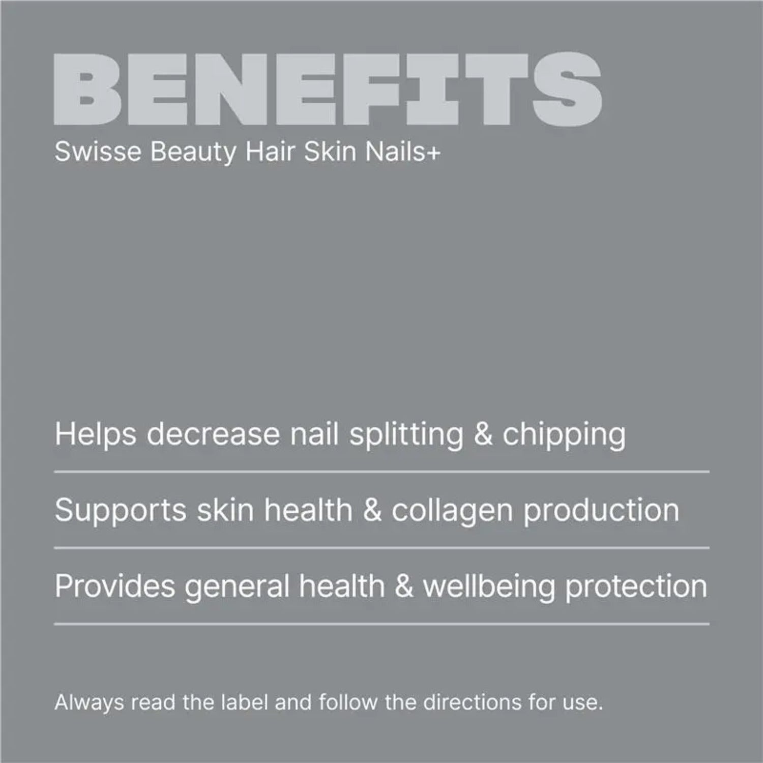 Radiant Skin, Glossy Hair & Healthy Nails: Formulated with silica and vitamin C to help maintain healthy hair, skin and nails along with zinc to assist minor wound healing and skin health.